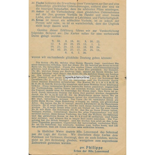 Lenormand VSS 1923 Wahrsagekarten (WK 17799)