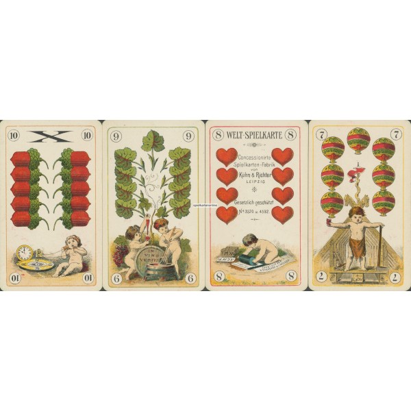 Karten sehr gut erhalten, lediglich Eichel Daus mit Oberflächenschaden unten rechts und 3 Karten mit minimalen Fehlern auf den Rückseiten