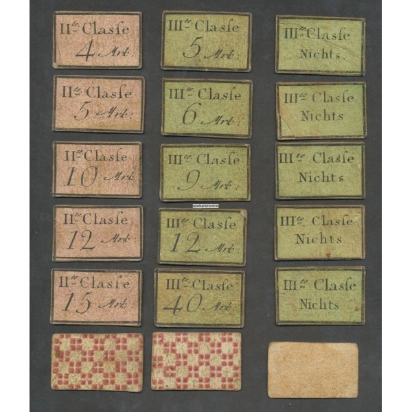 40 Textkarten + je 8 Karten "1 te / II te / III te Classe" + 15 Karten "IIIt e Classe Nichts"